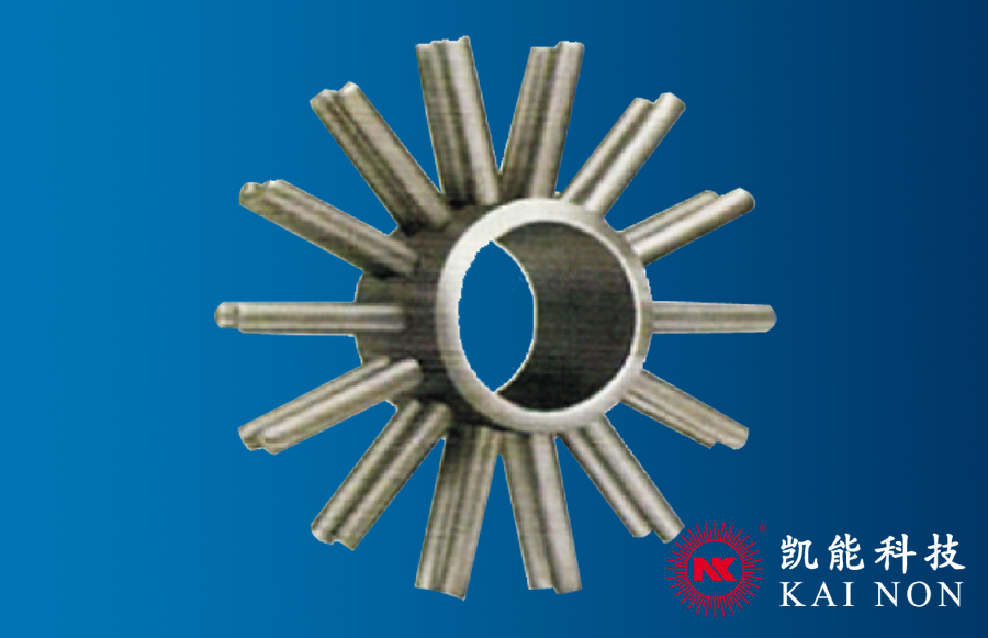 凱能針形管強化換熱原件是由針形管自動焊機將一系列圓柱形焊接在鋼管表面,其特征是:1.四方型圓周等分布置焊接;2.六角型圓周等分布置焊接。與傳統(tǒng)針形管制造工藝相比,四方型、六角型針形管強化換熱元件,采用焊接一次成型,改變過去焊接后采用專用工裝強制拉伸成型后焊針有脫落現(xiàn)象,使針形管焊接更加牢固,焊針不易脫落。針形管的焊針直徑、長度、縱向間距、周向焊針針數(shù)和焊針傾角都是影響針形管傳熱的因素。所以,必須全面系統(tǒng)地考慮,才能更具有實際應(yīng)用性。采用四方型和六角型圓周等分布置焊接的針形管,具有更大的擴展表面,且針形管對流體有擾動作用,能較大幅度地提高傳熱系數(shù),特別適用于高粘度油品,如原油、重油等介質(zhì)的強化傳熱場合。